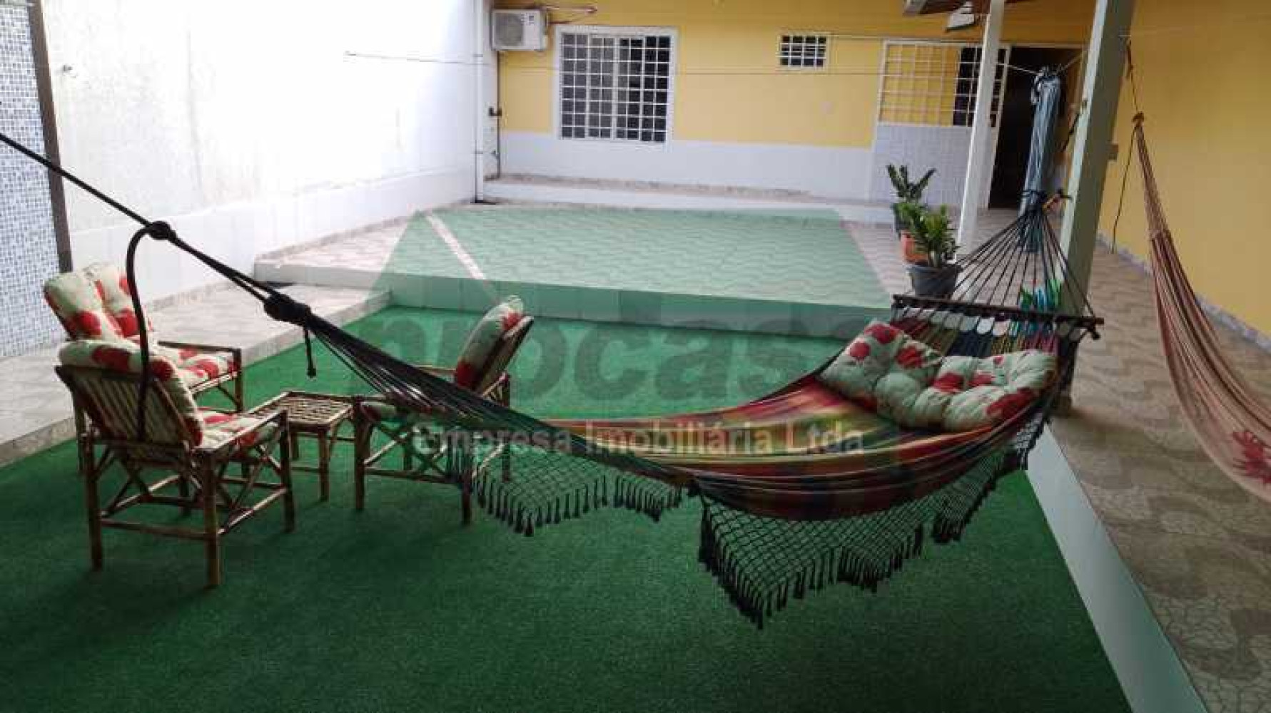 01 Lindo quintal com grama sintética e dois chuveiros