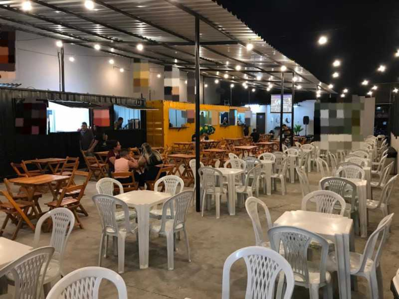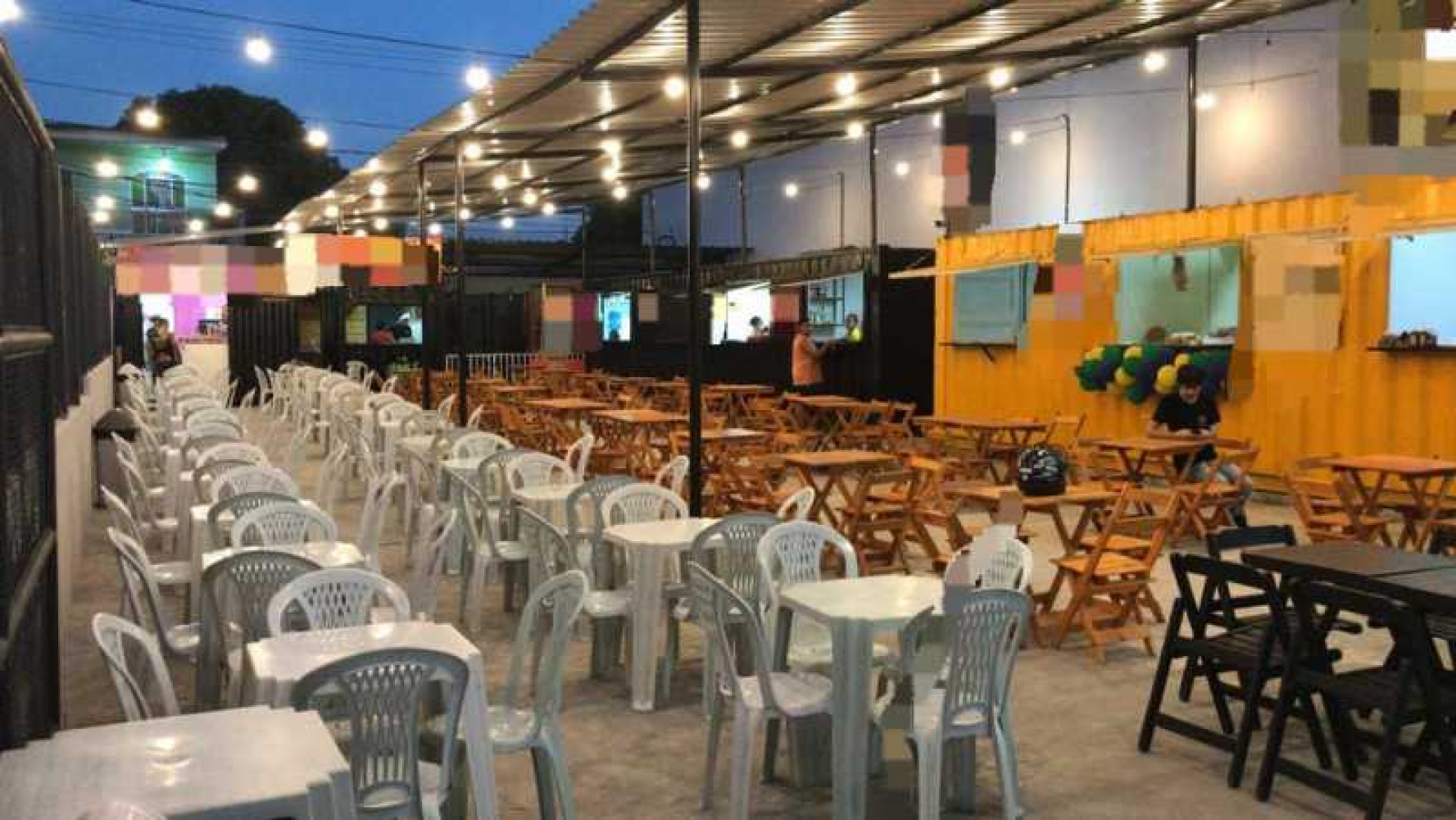 VENDE SE TODA ESTRUTURA DE PRAÇA DE ALIMENTAÇAO COM 3 CONTAINERS, JOGOS DE MESA E CADEIRA, PROJETOR , TELAO, COBERTURA E OUTROS