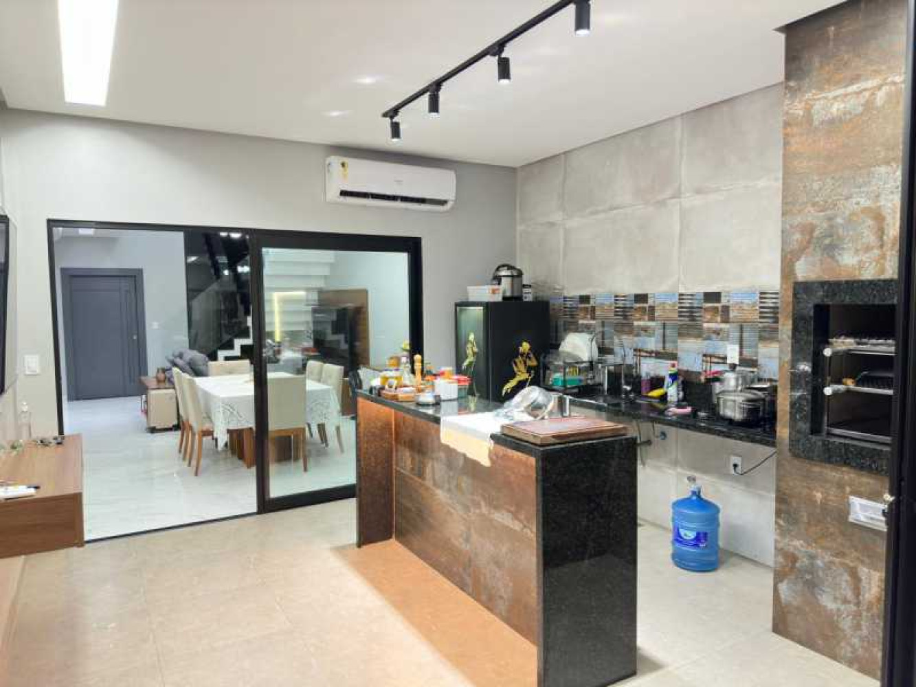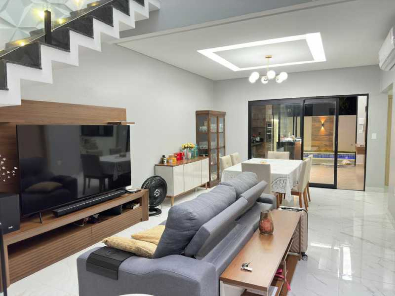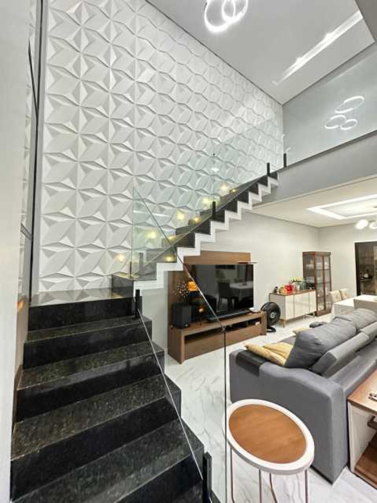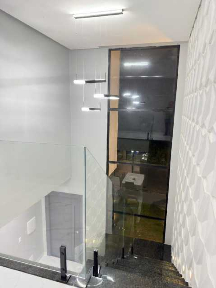 - Jardim na frente - 2 vagas de garagem coberta e 2 vagas descobertas - Sala ampla - Sala de Jantar - Copa - Cozinha - 2 lavabos - Escada com acabamento em blindex - 3 suites - Varanda - Piscina - Quintal
