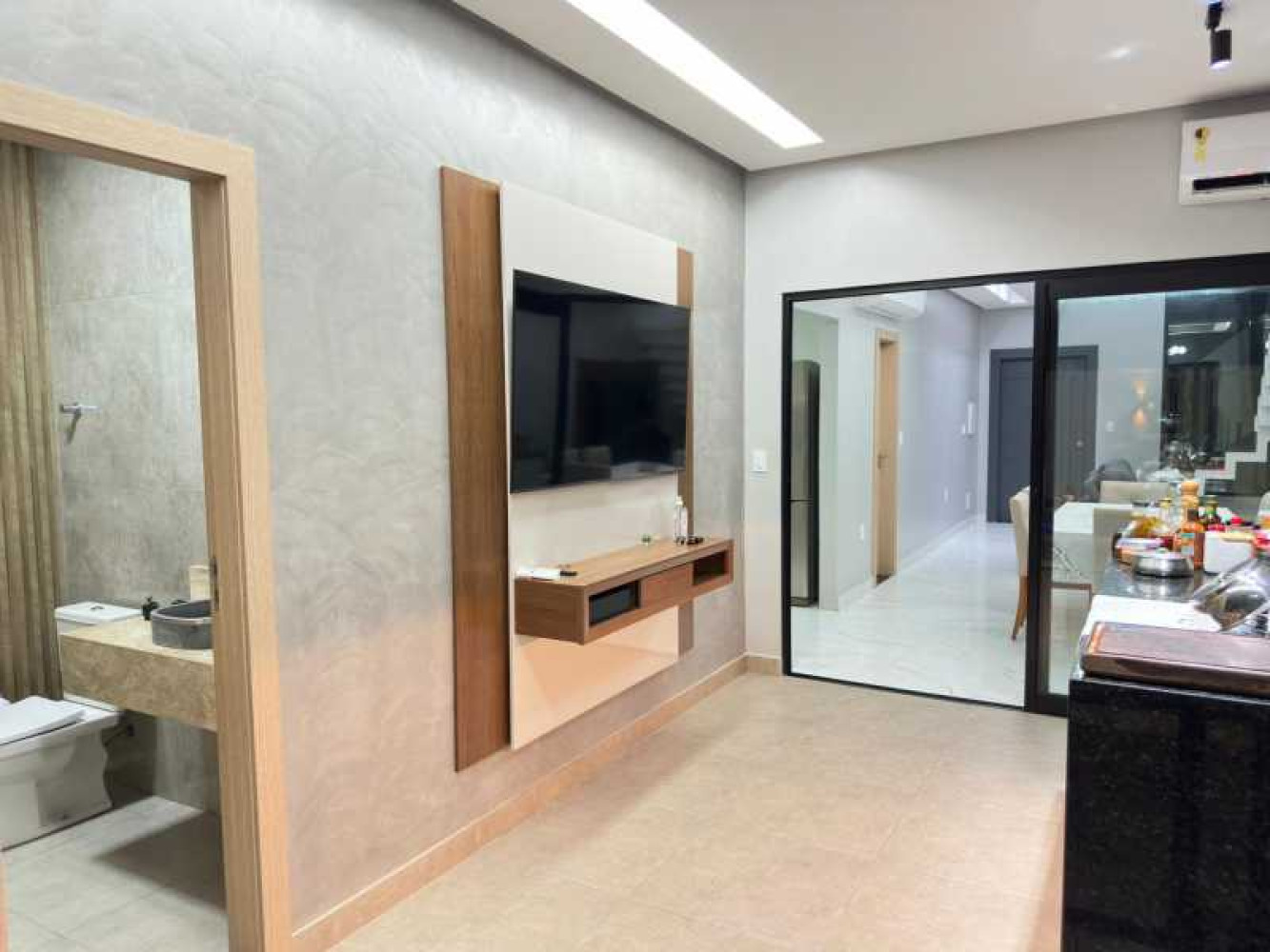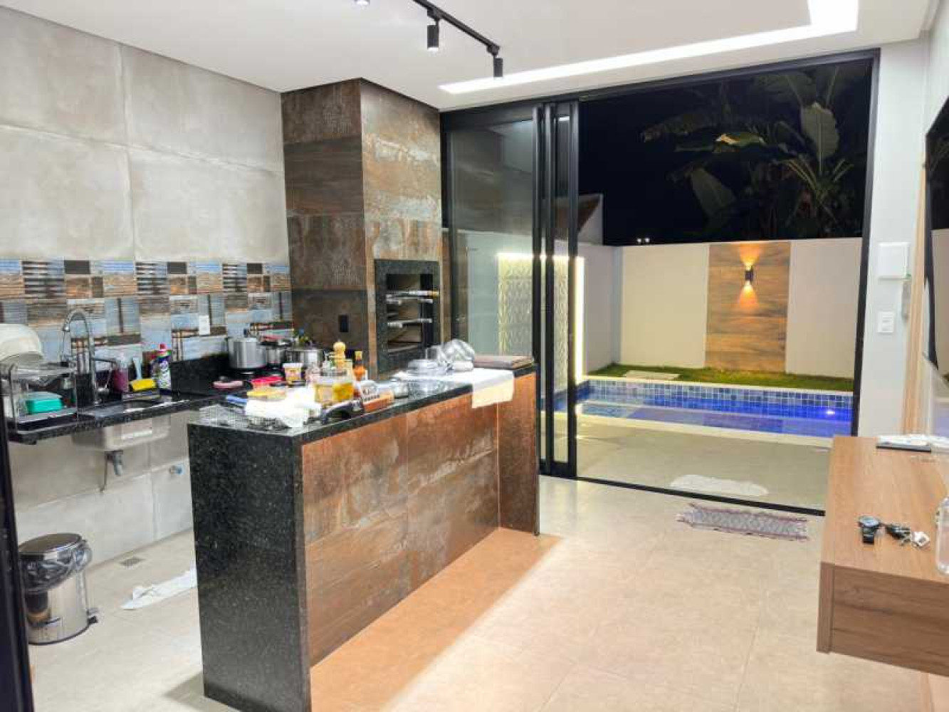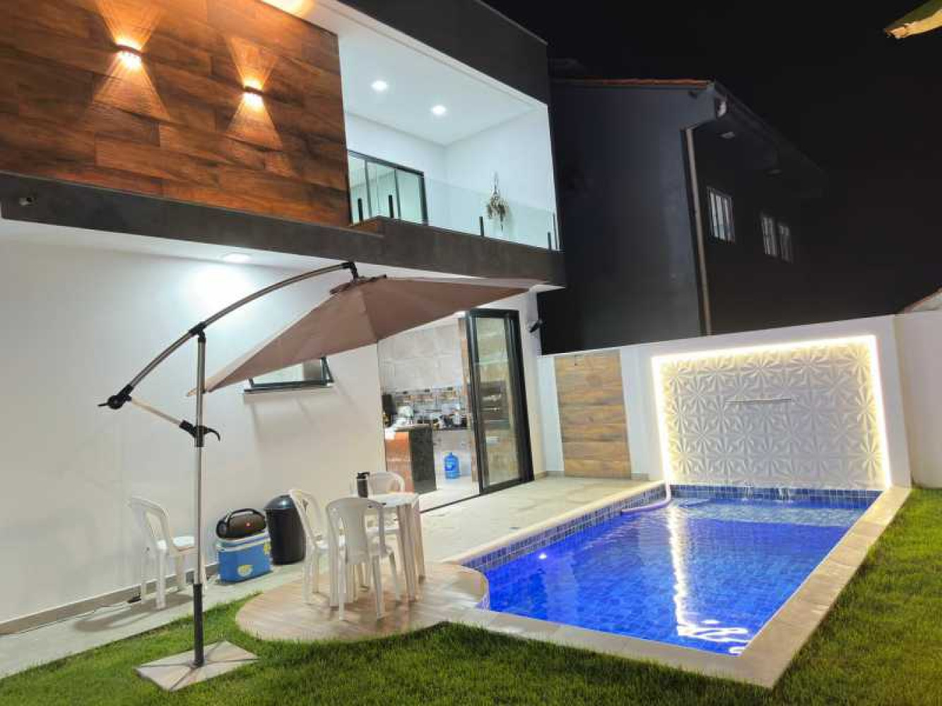 - Jardim na frente - 2 vagas de garagem coberta e 2 vagas descobertas - Sala ampla - Sala de Jantar - Copa - Cozinha - 2 lavabos - Escada com acabamento em blindex - 3 suites - Varanda - Piscina - Quintal