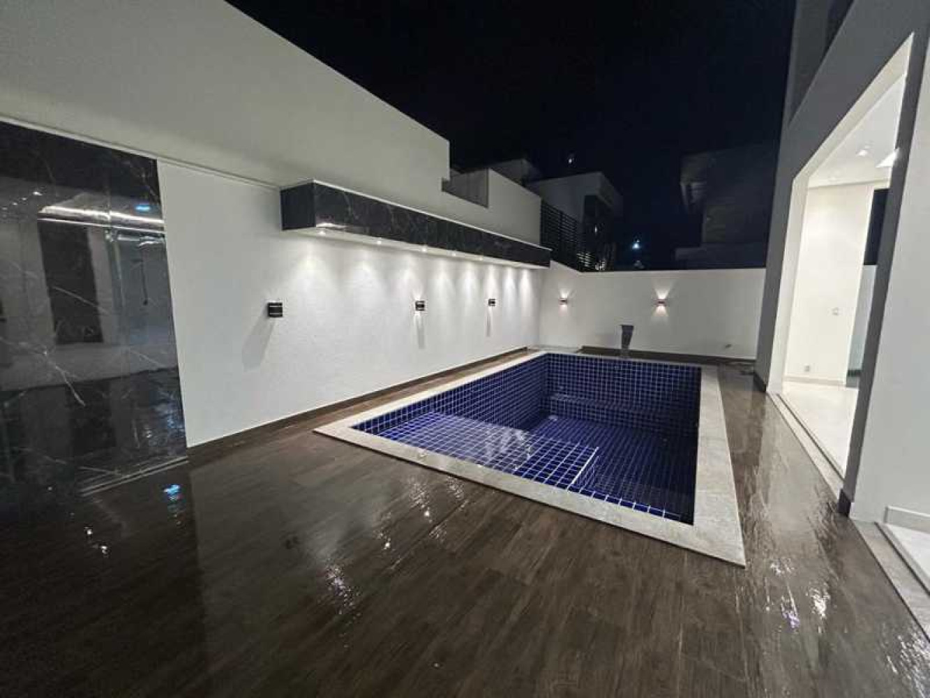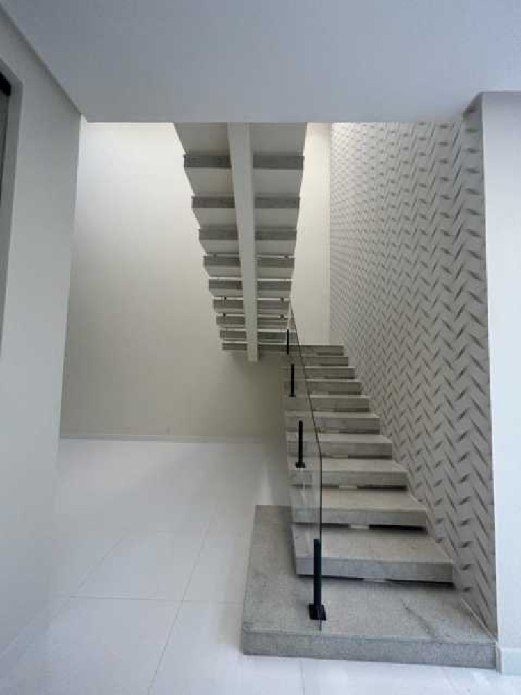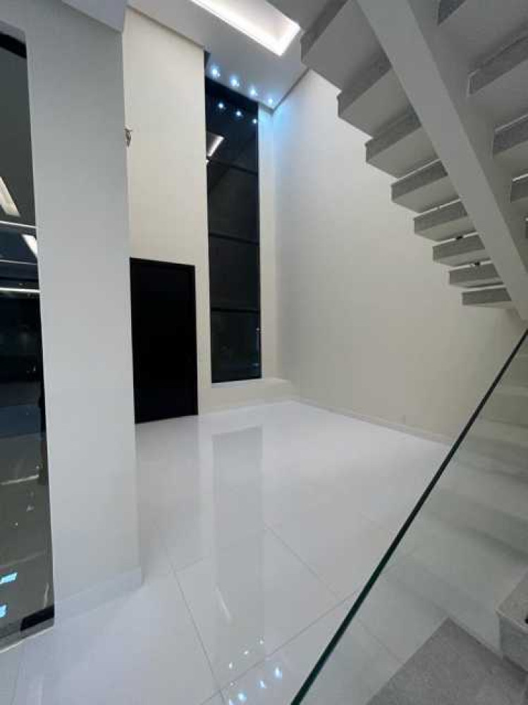 Piscina com prainha e cascata área de 22m2 Área gourmet com churrasqueira e bancada em granito (sendo que o espaço amplo permite uma sala de estar, cozinha e mesa para a família) 4 suítes, sendo 3 com closet 2 varandas 1 banheiro social 1 lavabo Sala com pé direito duplo Cozinha Sala de jantar Sala de estar Garagem para 4 carros sendo 2 vagas cobertas