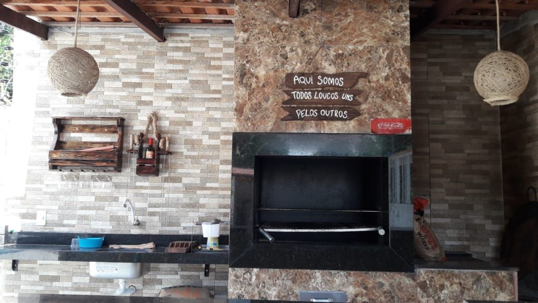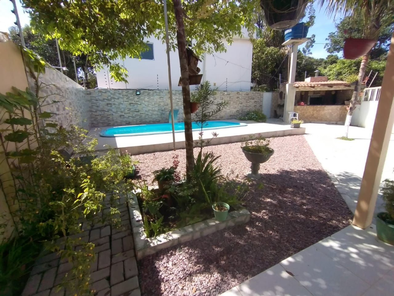 Churrasqueira em mármore e fogão à lenhaEstacionamento para 5 veículosCerca elétrica
